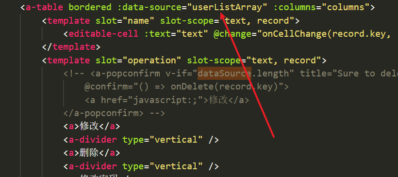 <a-table bordered :data-source="userListArray" :columns="columns" :pagination="false">