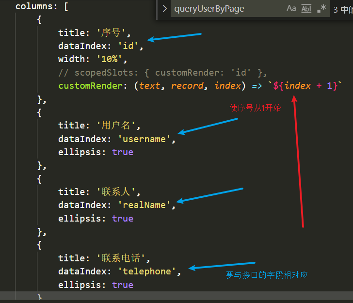 修改组件中列名里的dataIndex值为接口所对应的字段值,所有数据会立马呈现在页面上