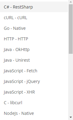 并且能查看不同语言的请求示例