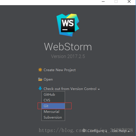第二步:打开webstorm 如下界面:点击git