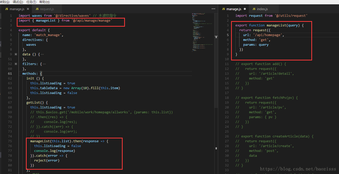 第三步:直接调用,this.list为传的参数,params将会把参数拼接到请求接口url