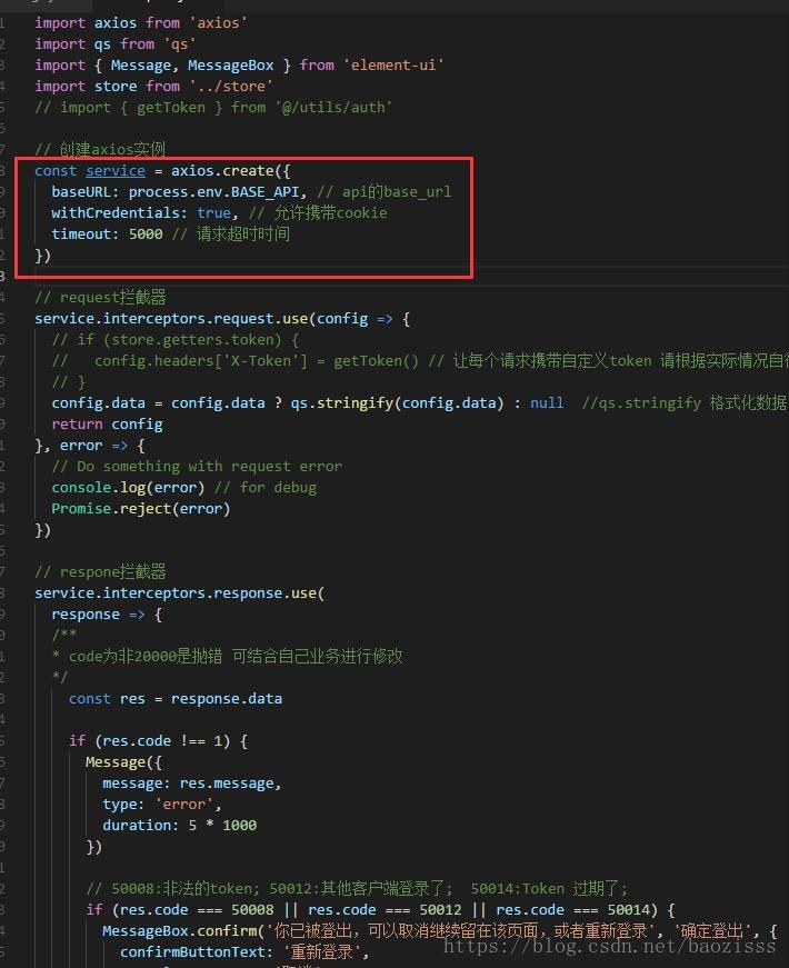 第三步:配置utils文件夹下的request.js,这里的code记得 结合自己业务进行更改