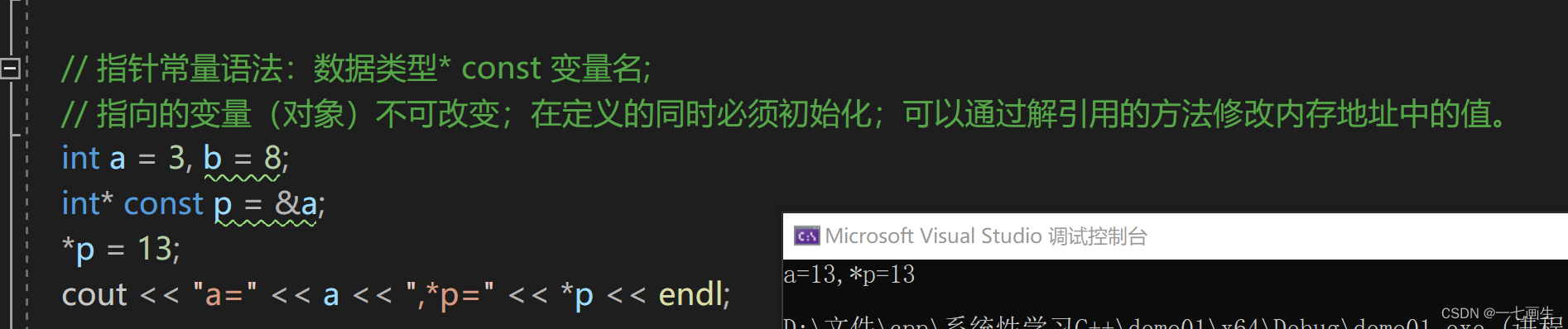 指向的变量(对象)不可改变,不能通过解引用的方法修改内存地址中的值。