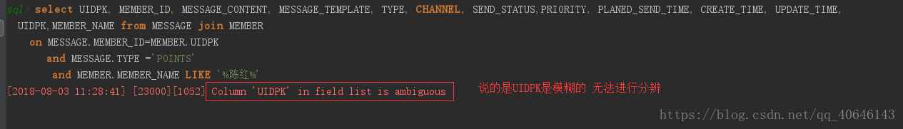 俩个表有相同的字段,然而我们没有进行区分UIDPK是哪张表的字段,所以会出来上面的错误