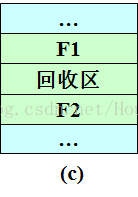 (4) 回收区既不与F1邻接,又不与F2邻接。这时应为回收区单独建立一新表项,填写回收区的首址和大小,并根据其首址插入到空闲链中的适当位置。