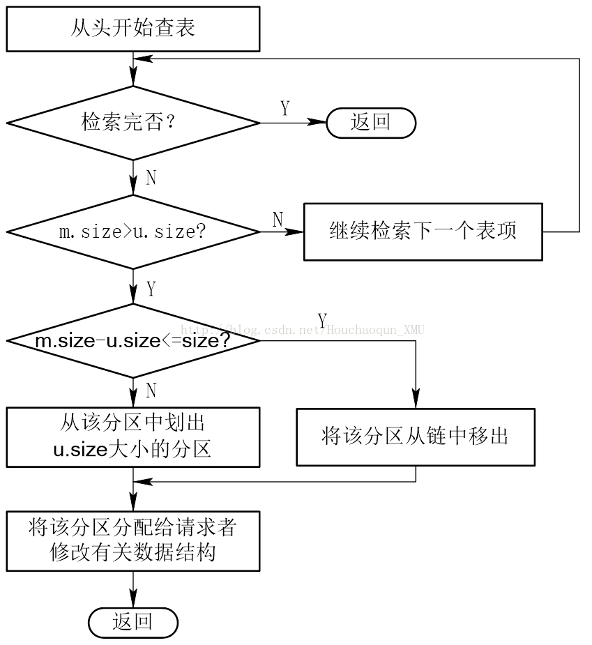 -- 在分配内存时,从链首开始顺序查找,直至找到一个大小能满足要求的空闲分区为止;