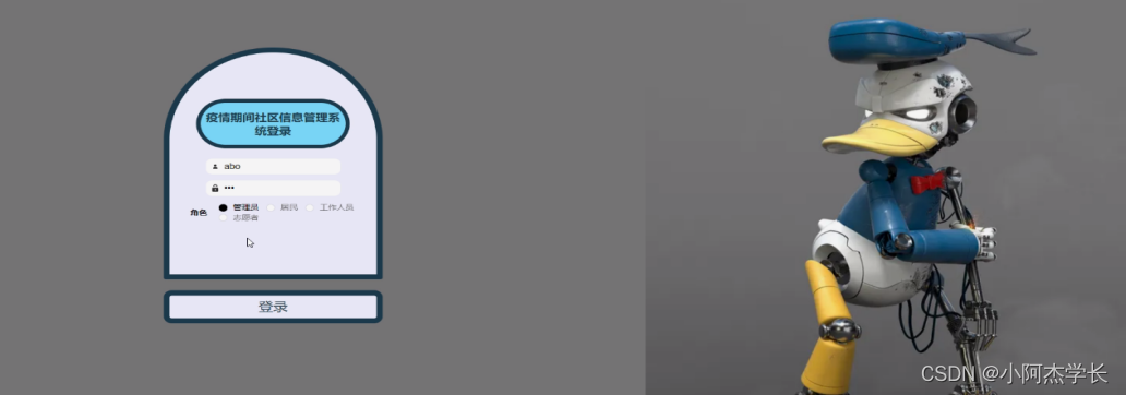 管理员登录,管理员通过输入用户名、密码,选择角色并点击登录进行系统登录操作,如图5-1所示。