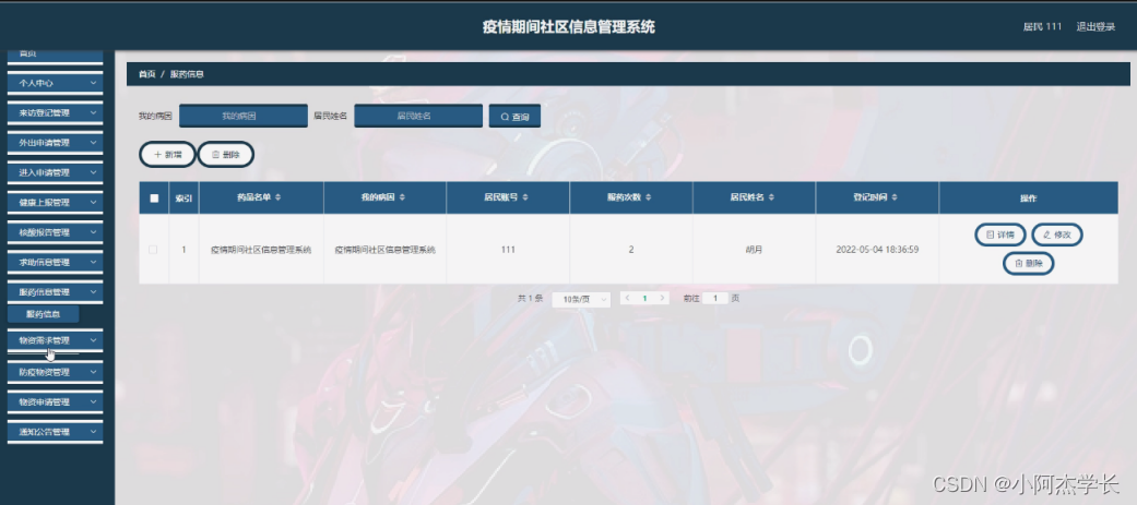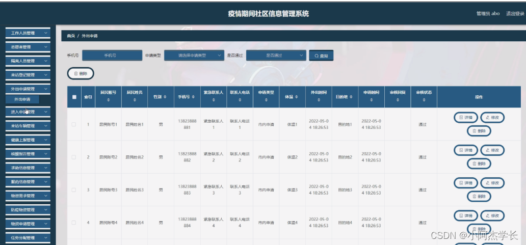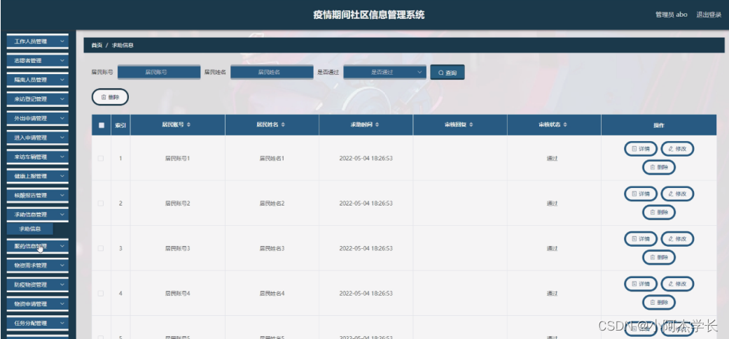 以上就是迅速凉面最近收集整理的关于计算机毕业设计(附源码)python疫情期间社区信息管理系统第五章 系统功能实现的全部内容,更多相关计算机毕业设计(附源码)python疫情期间社区信息管理系统第五章内容请搜索靠谱客的其他文章。