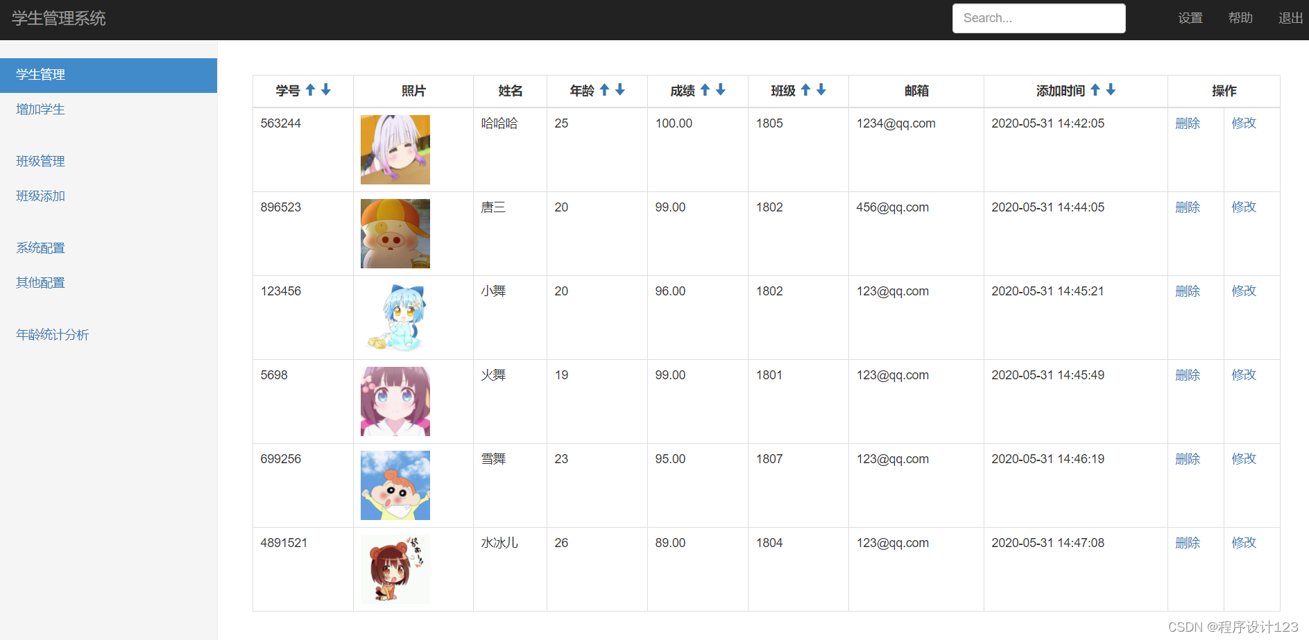 3、班级管理模块,可以对班级进行添加和删除操作。