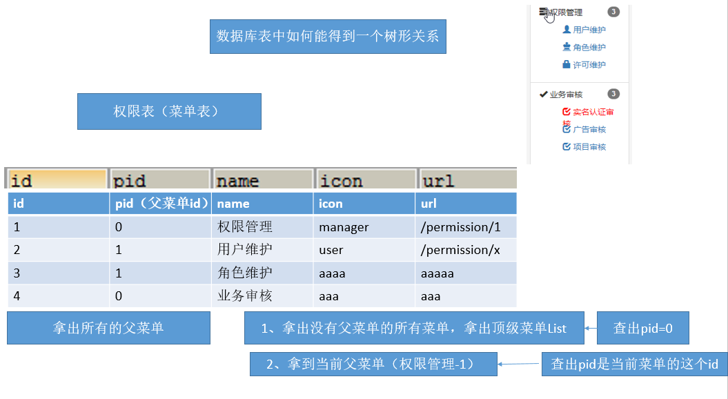 - 要求必须是按照不同的用户得到不同的菜单