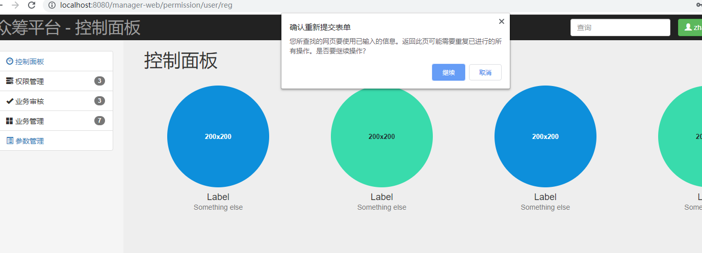 注册完,进入控制面板,刷新后会重新提交表单