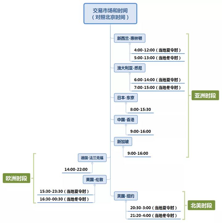 各个地区市场实际开放和关闭时间以当地营业时间为准,大多数地区的营业时间从当地时间上午7点至9点之间开始。