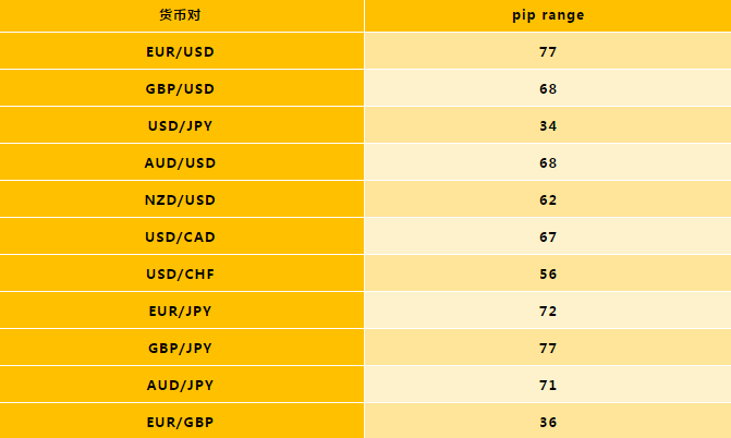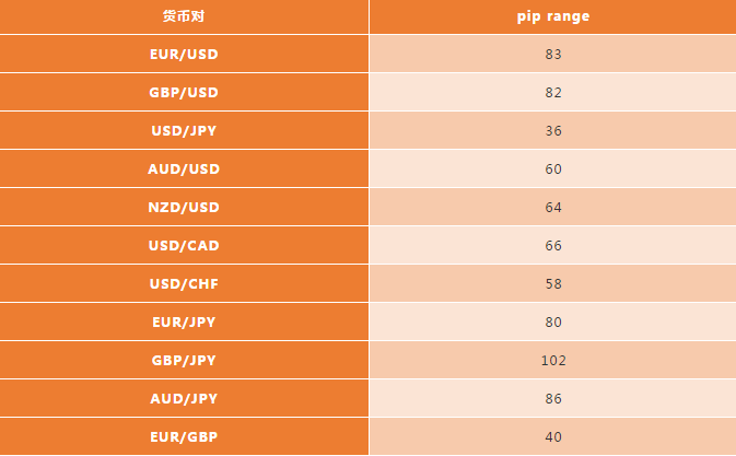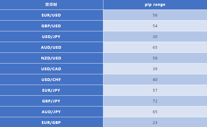 注:这些pip范围的值是根据历史数据计算的,实际市场中,可能因流动性和其他市场条件而异。
