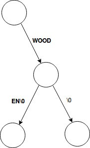 当需要加入一个被其他长单词所包含的短单词时,我们就直接把所有的字母放进去并加入一个空指针(终止符)。