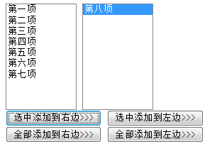 <input id="leftAll" type="button" value="全部添加到左边>>>"><br> </div> </body> </html>