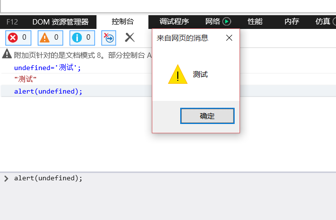 undefined:经楼主测试在 IE 8 下, undefined 属性值可进行修改,此时传入参数undefined 应该时保持 undefined 初始值。