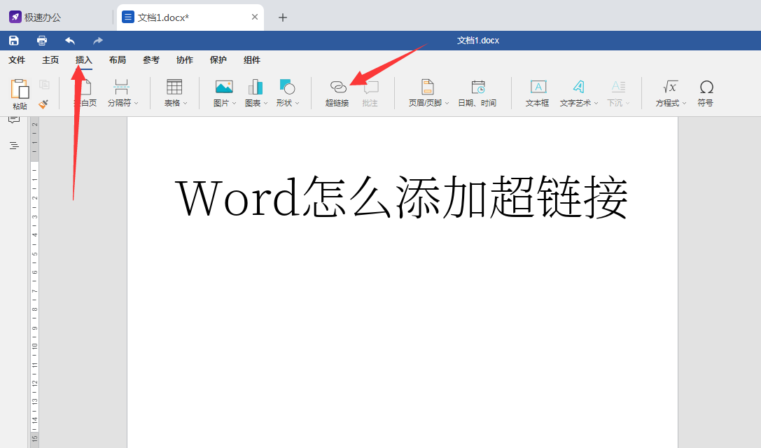 首先,用speedoffice打开Word文件,在“插入”里面找到“超链接”点击
