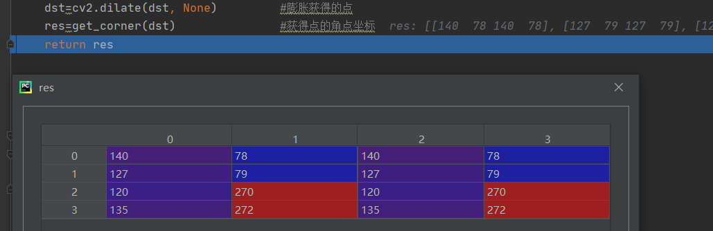 dst=cv2.dilate(dst, None) #膨胀获得的点