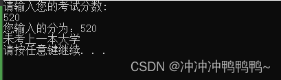 //大于500,视为考上二本大学,屏幕输出