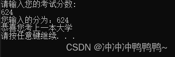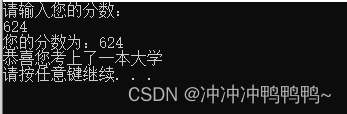 cout << "恭喜您考上一本大学" << endl;