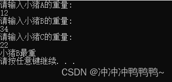 分别输入三只小猪的重量后,运行后的结果为: