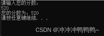 cout << "您的分数为:" << score << endl;