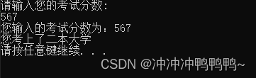 cout << "您考上了二本大学" << endl;