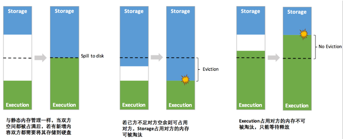 - Execution执行内存的空间被对方占用后,可让对方将占用的部分转存到硬盘,然后"归还"借用的空间