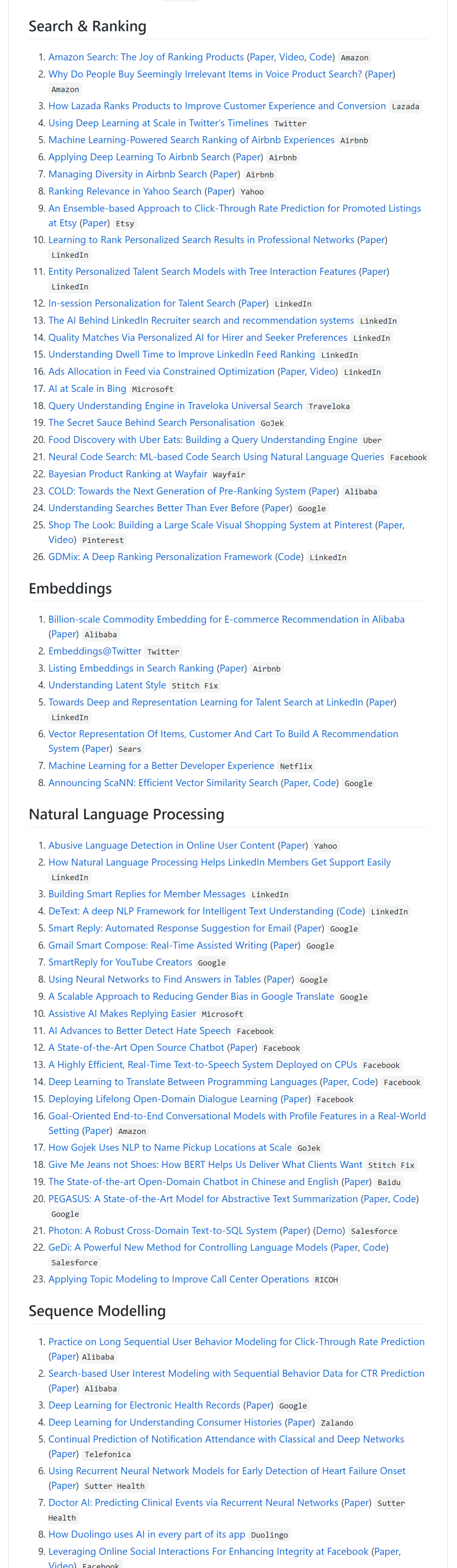 资源整理自网络,源地址:https://github.com/eugeneyan/applied-ml