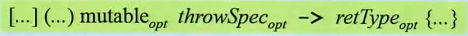 [i, …] 以值得形式捕获指定的多个外部变量(用逗号分隔);如果引用捕获,需要显示声明&