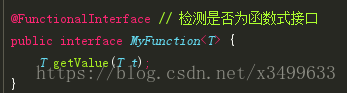 * 函数式接口:接口中只有一个抽象方法的接口。 可以使用注解 @FunctionalInterface 修饰 [ 检测是否是函数式接口 ]