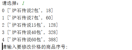 productindex = input("请输入要修改价格的商品序号:")