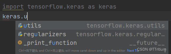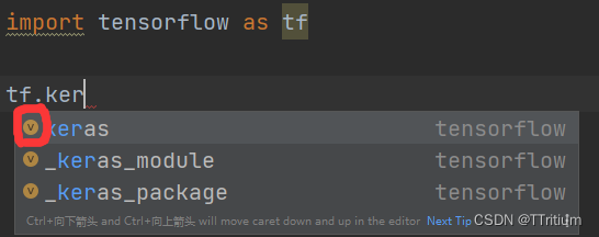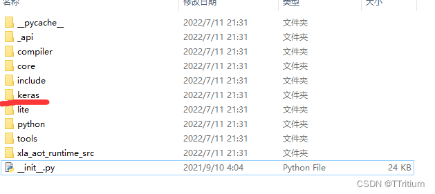我原以为是TensorFlow包里确实没有Keras,于是我进入