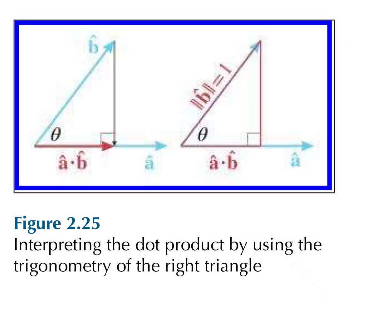 The dot product of two vectors is the magnitude of one times the projection of the second onto the first.★★★