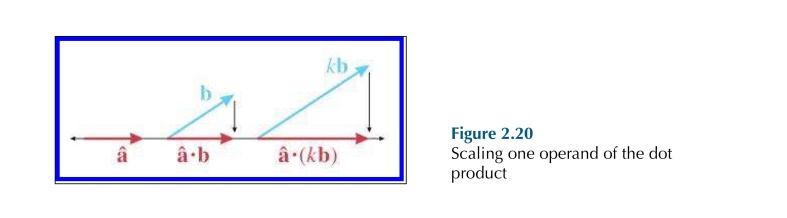 - Dot product’s scalar multiplication. (k a)·b = k (a·b) = a ·(k b)