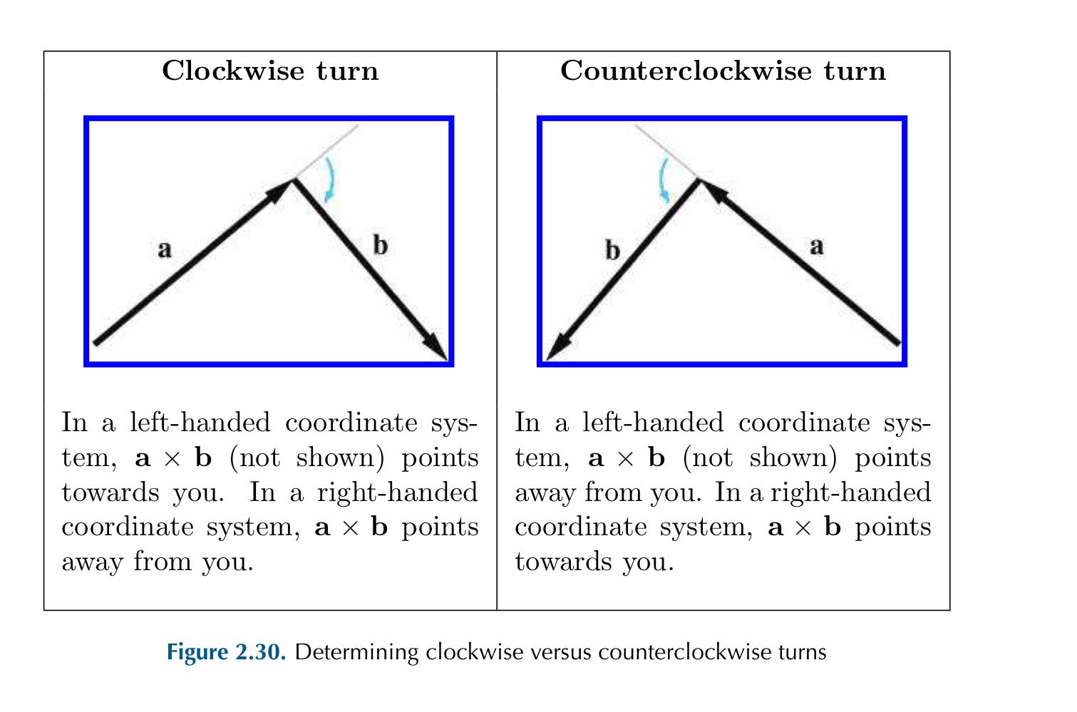 Notice that we must align the head of a with the tail of b, to make the clockwise or counterclockwise determination.
