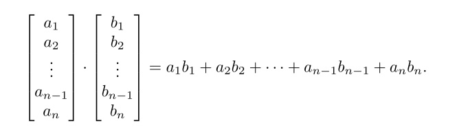- Dot product distributes over addition分配律. a·(b + c) = a·b + a·c