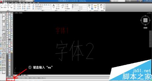 CAD格式刷快捷键使用。CAD里“格式刷”的快捷键为:MATCHPROP(缩写:MA、ma),图形和字体都可以用到,这里用字体格式来举例子。图面上有“字体1”“字体2”,两种格式的字体,现将“字体1”格式变成与“字体2”一样的格式。