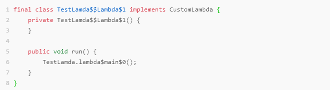 - 我们写的Lambda表达式代码,经编译系统编译后是什么样子的?