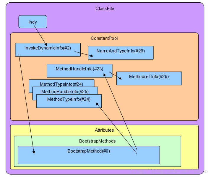 2、从常量池相JVM_CONSTANT_InvokeDynamic中拿到BootstrapMethods的索引。即我们目前调用的是第几个BootstrapMethod。