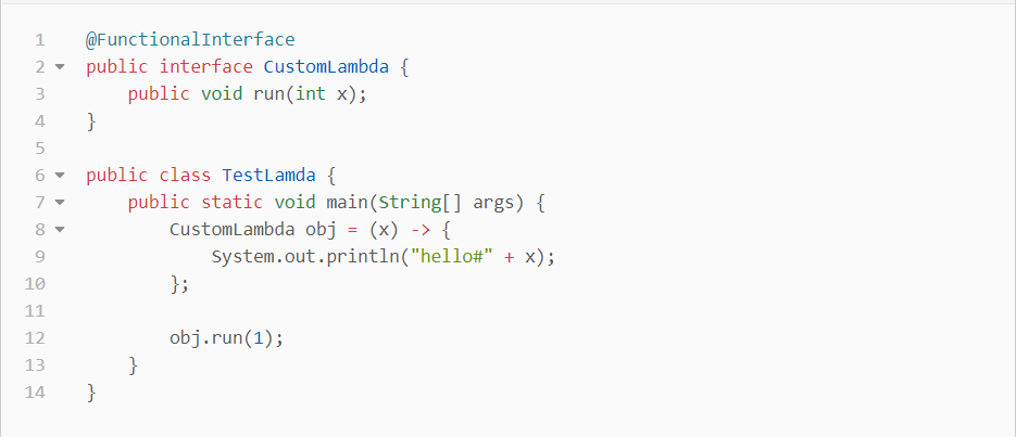 巴特,重复代码如此严重,免不了被其他语言嘲讽。大佬们就受不了了,免不了再次升级,一场革命酝酿着。于是Lambda表达式诞生了,顺便带来了函数式接口注解@FunctionalInterface。关于这个注解的细节,下篇文章讲。