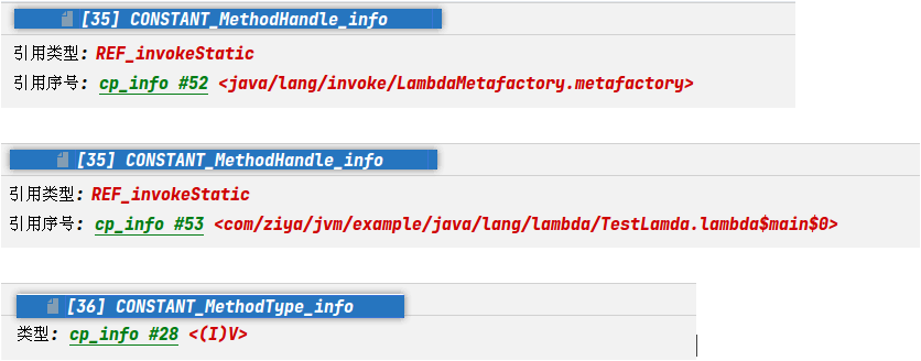 3、常量池中还会出现两个JVM_CONSTANT_MethodHandle,一个JVM_CONSTANT_MethodType。
