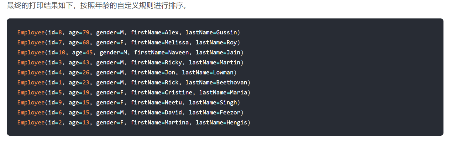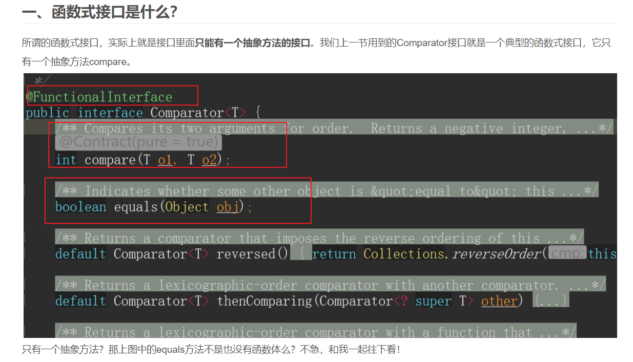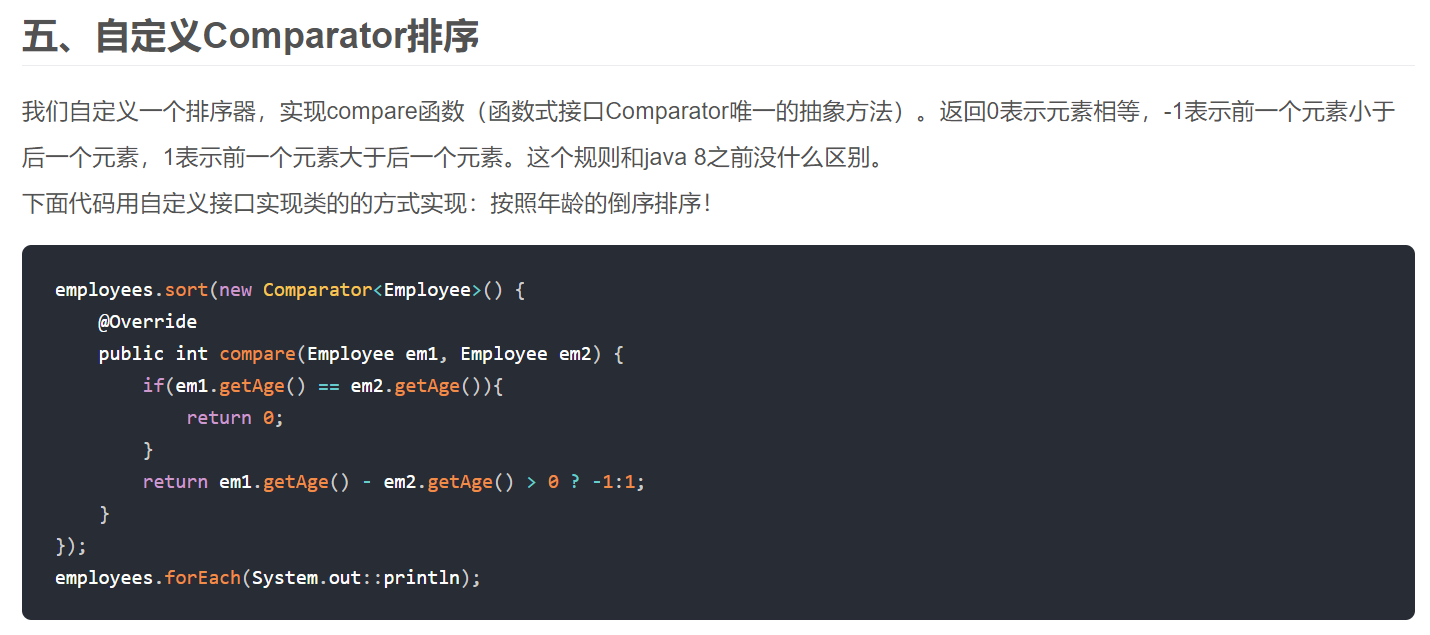 以上就是真实服饰最近收集整理的关于Lambda表达式九:补充二:Stream接口的sorted()方法,Comparator函数式接口效果展示;Comparator函数式接口;函数式接口严格规范;的全部内容,更多相关Lambda表达式九:补充二:Stream接口内容请搜索靠谱客的其他文章。