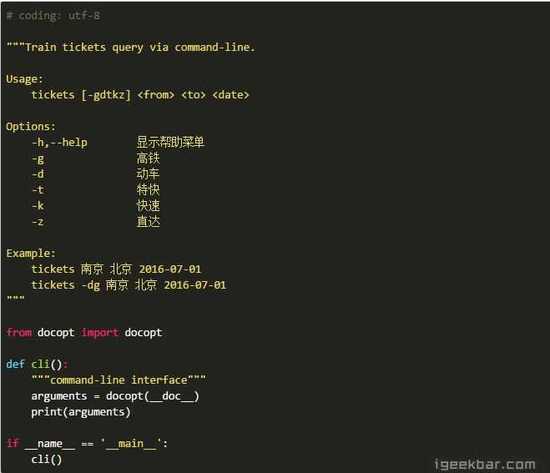docopt可以按我们在文档字符串中定义的格式来解析参数,在tickets.py中: