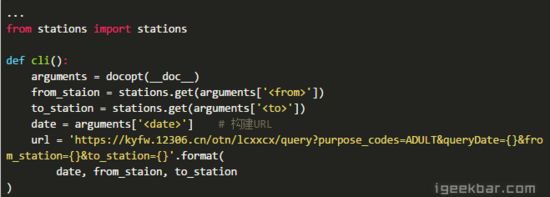现在,用户输入车站的中文名,我们就可以直接从这个字典中获取它的字母代码了: