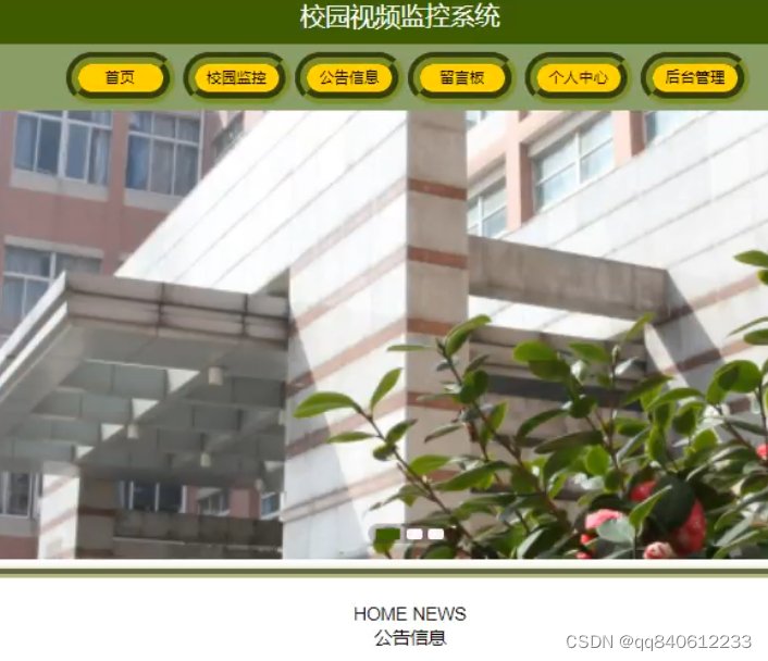 该部分内容提供首页,校园监控,公告信息,留言板,个人中心,后台管理等功能。