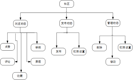 社区模块儿是系统的重要组成部分,该图显示的是组成社区模块儿的各个具体模块儿及其相互之间的关系。