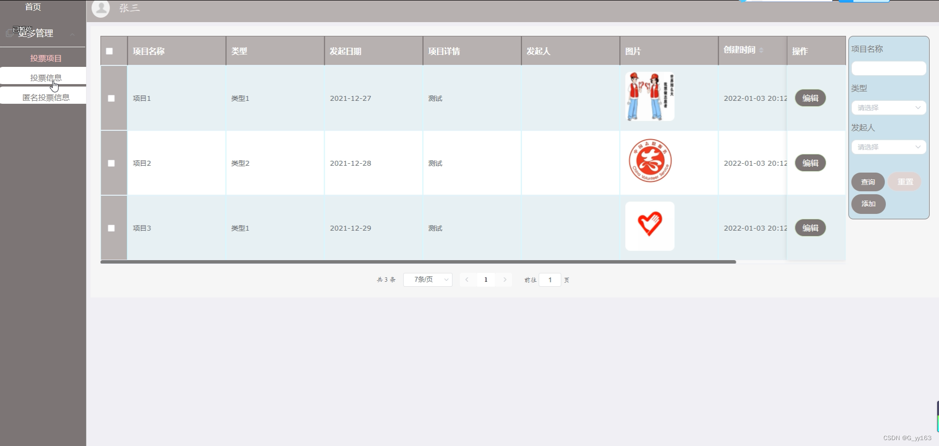 | 功能描述 | 用于投票项目管理 | |