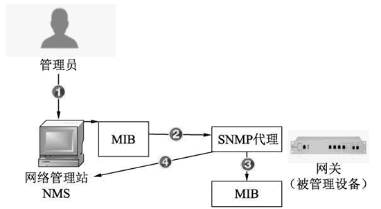 上图中展现了管理员通过 NMS 获取网关监控数据的工作流程,其中涉及了一些 SNMP 协议的关键信息。