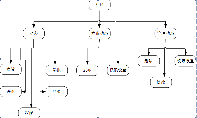 动态发布与管理功能概述:用户根据系统提供的注册方式(任何一种皆可)进行注册获取用户权限,然后登录系统,进入“社区”界面。在“社区”界面中,用户可以发布动态,并且可以对要发布的动态进行相应的权限设置。对于已经发布的动态,系统仍然为用户提供了相应的操作权限,包括修改、删除、设置其他用户(部分或全部)是否可见,以及关闭评论等。同时,在“社区”界面中,用户可以对他人的动态进行浏览(在该动态对此用户为可见权限的情况下)、收藏、评论(在该动态对此用户为可评论权限的情况下)、屏蔽、举报等操作。